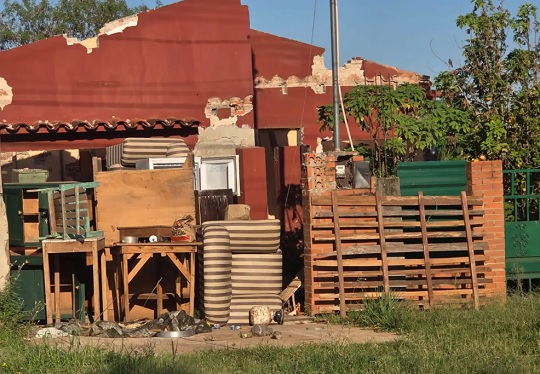 En el lugar aún se observaban pertenencias de la anciana esparcidas en la calle. La escena reflejaba la salida reciente de la vivienda. La afectada afirmó que actualmente depende del apoyo familiar.