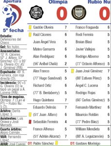 El líder Olimpia frenó su marcha este sábado al igualar 0-0 con Rubio Ñu en Sajonia. El partido tuvo dominio franjeado en el trámite. Sin embargo, el segundo tiempo le dejó dos golpes.
