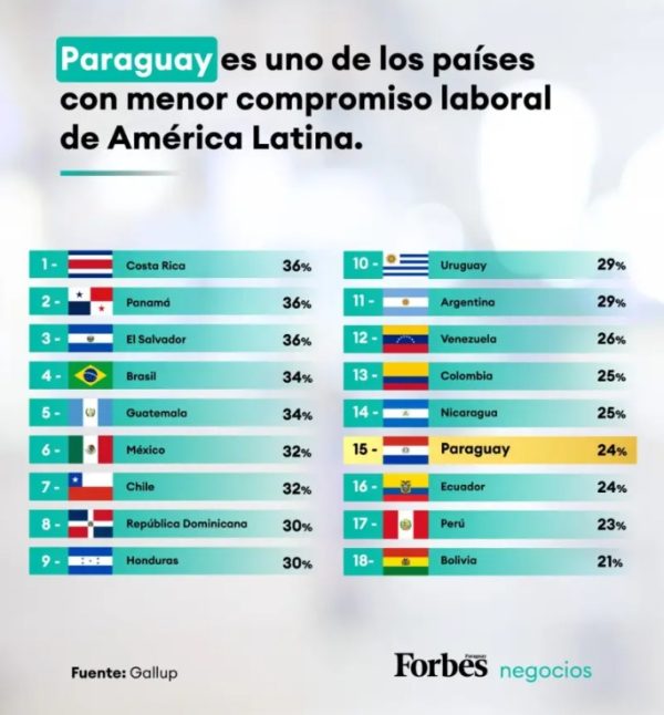 Compromiso laboral: Paraguay queda por debajo del promedio regional