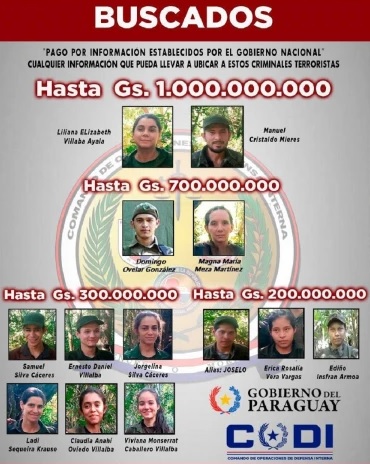 El Gobierno Nacional, a través del Comando de Defensa Interna (CODI), mantiene vigente un sistema de recompensas. Las sumas ofrecidas por información que conduzca a capturas oscilan entre G. 200 millones y G. 1.000 millones, según el perfil de cada miembro.