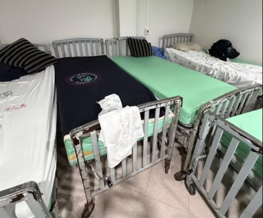De acuerdo con la denuncia, las camas hospitalarias se encuentran amontonadas y presentan signos de herrumbre. Además, el espacio disponible es reducido y dificulta la circulación dentro de las habitaciones.