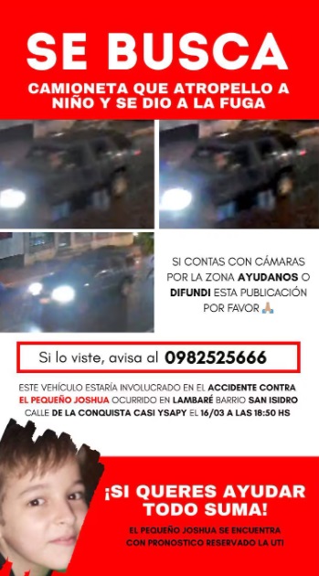 Un niño de 9 años permanece internado tras ser atropellado por una camioneta cuyo conductor huyó del lugar. El hecho ocurrió el pasado 16 de marzo en el barrio San Isidro de Lambaré. La familia enfrenta la recuperación del menor y la falta de avances concretos para identificar al responsable.