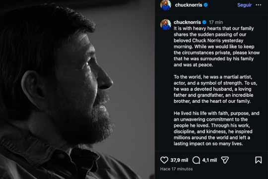 Además, desarrolló proyectos editoriales y registró su sistema de combate Chun Kuk Do. Norris deja a su esposa Gena y a sus hijos. La familia informó que el actor estuvo acompañado y en paz en sus últimos momentos.