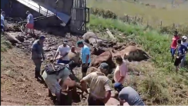 El vuelco de un transganado en la ruta PY01 derivó en la faena de vacunos por parte de más de 1.000 personas en Caapucú. El accidente ocurrió alrededor de las 09:40, cuando el acoplado de un tractocamión se desprendió al tomar una curva cerrada, provocando su caída al costado de la vía.