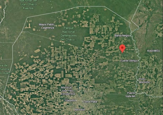 La estancia Marán del Chaco (en rojo), de donde supuestamente despegó el helicóptero que habría sufrido un accidente aéreo.