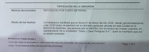 El caso fue presentado el 29 de abril de 2026 ante autoridades laborales. La trabajadora solicita su reposición por presunta violación del fuero maternal, un derecho básico que protege a mujeres embarazadas.
