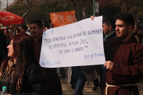 Imagen anterior Imagen siguiente carteljovenes Congregaciones Católicas participaron de la movilización. Foto: Lorena Galeano.