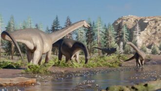 En la Patagonia argentina, investigadores descubrieron fósiles de un inédito dinosaurio herbívoro de cuello largo y pico de pato.