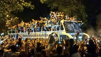 Olimpistas coparon la avenida Mcal López frente a Para Uno. El momento cumbre fue cuando el equipo llegó poco después de la medianoche.