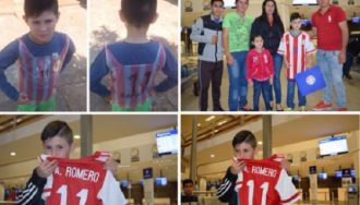 Milner Alvarenga, conocido por usar una casaca de la selección hecha de hule, fue invitado por su ídolo, Ángel Romero para ver un partido del Corinthians con la Albirroja puesta.