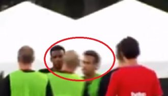 La estrella brasileña del Barcelona, Neymar, perdió la calma durante un entrenamiento y se tomó con uno de sus compañeros. Ofuscado, se retiró de la práctica.
