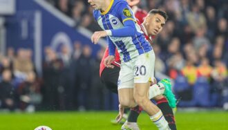 El joven delantero paraguayo Julio Enciso jugó todo el partido en el Brighton ante el Manchester United, por la Premier League.