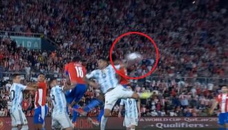 En el primer tiempo del juego en el Defensores del Chaco entre Paraguay y Argentina, hubo una mano en el área de la visita, que no fue sancionada como penal.