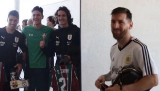 Los planteles de Argentina y Uruguay recibieron camisetas del Fluminense, en Brasil. La reacción de los futbolistas, de uno y otro país, dio de qué hablar.