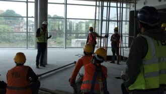 Trabajadores que prestan servicios en las obras de las Oficinas de Gobierno, recibieron capacitación en materia de seguridad laboral, prevención de accidentes y medidas sanitarias contra el Covid-19.