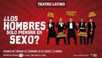 Este fin de semana, se presentará la obra “¿Los hombres solo piensan en sexo?” en el Teatro Latino, de la mano de Equipo Teatro. Contará con la actuación de Javier Lacognata, Lucas Cabrera, Joaquín Díaz Sacco, Daniel Willigs y Juan Carlos Cañete.