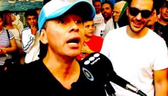 El vocalista de Damas Gratis alentó a la selección argentina con un improvisado recital en una peatonal de Moscú. Los presentes bailaron y cantaron al son de sla cumbia.