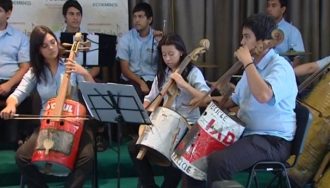 Las autoridades de Gijón, España, brindaron un acto de bienvenida a la Orquesta de Instrumentos Reciclados de Cateura.