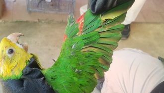 En Luque, un vendedor fue atrapado ofreciendo loros teñidos con tintura para aparentar especies exóticas. Las aves estaban heridas.