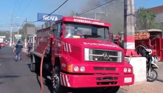 Incendio en depósito abandonado en Lambaré genera alarma, pero el fuego fue controlado sin afectar a comercios vecinos.