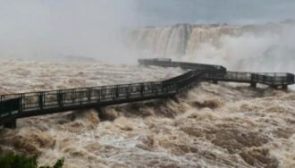 Las Cataratas del Yguazú, entre Argentina y Brasil, rompen récords con un caudal de 10.5 millones de litros por segundo debido a intensas lluvias.