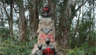 Las protestas por racismo, se direccionan ahora contra figuras como la del creador de Don Quijote atacando a su busto en San Franciso. También tumban una estatua de Fray Júnipero Serra.