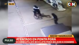 Un hombre se salvó de la muerte al lograr esquivar las balas que le disparó un sicario que estaba a bordo de una bicicleta. El hecho ocurrió en Ponta Porá y quedó registrado en un video de circuito cerrado.