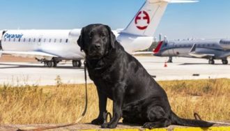 Rocky, labrador del equipo K-9 de la SENAD, será distinguido por la Junta Municipal de Asunción por su labor en operativos de seguridad nacional.