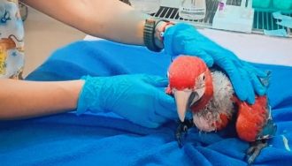 MADES rescató a tres guacamayos en riesgo de extinción en Alto Paraná. Estaban enjaulados en precarias condiciones y muestran signos de maltrato.