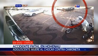 Un adolescente perdió la vida luego de colisionar violentamente contra una camioneta que estaba saliendo del estacionamiento de un local comercial. El hecho ocurrió en Hohenau y quedó registrado en cámaras de circuito cerrado.