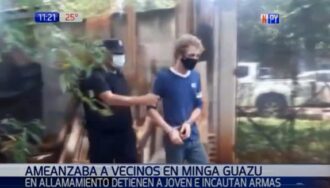 La casa de un hombre fue allanado este jueves, luego de que se viralizara un video, en donde se lo ve apuntando con un rifle a una mujer con un niño en brazos.