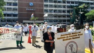 Médicos del Instituto de Previsión Social (IPS) realizaron una medida de protesta reclamando el no nombramiento de profesionales residentes y la eliminación de beneficios afines.