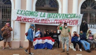 En la madrugada de este lunes, un grupo de ciudadanos indignados se encadenó en las puertas de la Municipalidad de Concepción, exigiendo la intervención de la administración del intendente Alejandro Urbieta.