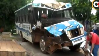 Un bus de la zona de Ciudad del Este terminó contra una columna, durante la jornada de este viernes.