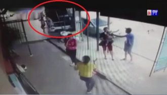 Un aparatoso accidente se registró en la ciudad de Itauguá. El percance quedó registrado en cámaras de circuito cerrado.