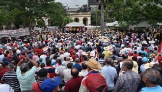 Una gran cantidad de funcionarios públicos de diferentes sectores se conglomeran en las inmediaciones del Parlamento Nacional para presionar a los senadores por la inclusión de aumentos salariales en el Presupuesto General de la Nación 2020.
