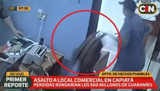 En la mañana de este miércoles se registró un inusual robo en un local de venta de electrodomésticos en la ciudad de Capiatá. Uno de los dos malvivientes se alzó con una mochila que contenía G. 500 millones.