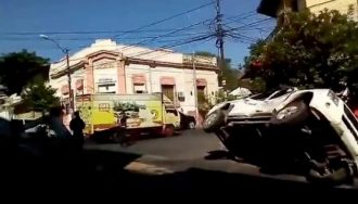 Dos oficiales de la Policía Nacional sufrieron heridas luego de que la patrulla en la que se trasladaban haya sido embestida por otro vehículo. Los agentes escoltaban a otro rodado que llevaba a reos de la cárcel de Emboscada.