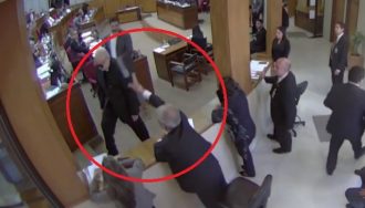 El senador Juan Carlos Galaverna derramó un chorro de agua a su colega Paraguayo Cubas durante la sesión de este jueves, en respuesta a lo que había hecho ahora agredido el pasado 11 de abril.
