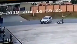 Imágenes de circuito cerrado retrata el momento de un grave percance de tránsito. Un joven de 17 años resultó víctima.