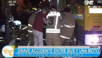 Dos motociclistas resultaron heridos tras embestir contra un ómnibus en la noche del lunes. La causa del percance fue la falla de dos semáforos.