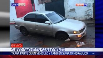 En la mañana de este lunes, quedó atascado en un bache de aproximadamente un metro de profundidad, en la calle Coronel Bogado de San Lorenzo.