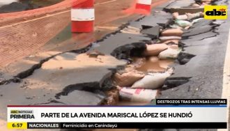 Un tramo de la avenida Mariscal López se hundió tras las intensas lluvias que se registraron durante el fin de semana.