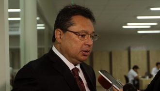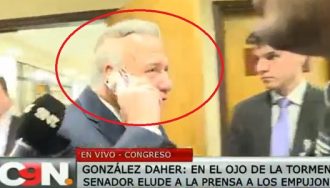 El senador Oscar González Daher conversó de manera escueta con medios de prensa en el Senado. Primero aseguró que él hablaría sobre lo que él quería, luego soltó que no vio manifestación alguna en su contra.