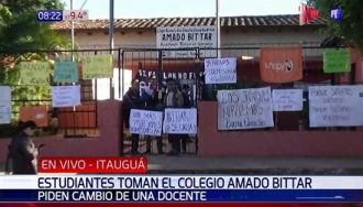 Alumnos tomaron el colegio Amado Bittar de Itauguá desde la noche del domingo. Exigen la salida de una docente, ya que alegan no cumple adecuadamente sus funciones en la institución educativa.