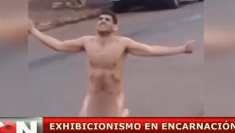 La Policía Nacional capturó a un hombre que permanecía totalmente desnudo y arrodillado en el medio de una arteria de Encarnación, deteniendo en tránsito en la zona.