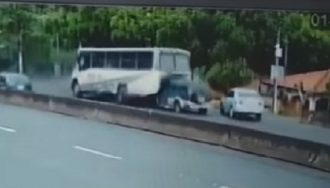 Un ómnibus que circulaba en reversa por la ruta 2, protagonizó un inédito accidente. Embistió contra vehículos que transitaban en sentido correcto.