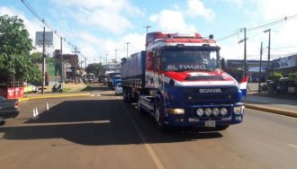 Conductores volvieron a movilizar camiones de gran porte protestando contra el ingreso de bitrenes al territorio paraguayo. Se estima que la marcha se prolongue durante más de cuatro horas.