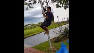 Un hombre que habría robado presuntamente una lámpara del paseo central de la avenida 11 de Setiembre, de Ciudad del Este, fue obligado a colocarla de nuevo en el sitio.