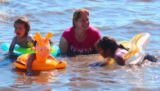 Pese a estar inhabilitada la Playa Municipal de San Bernardino es el punto preferido por los bañistas.